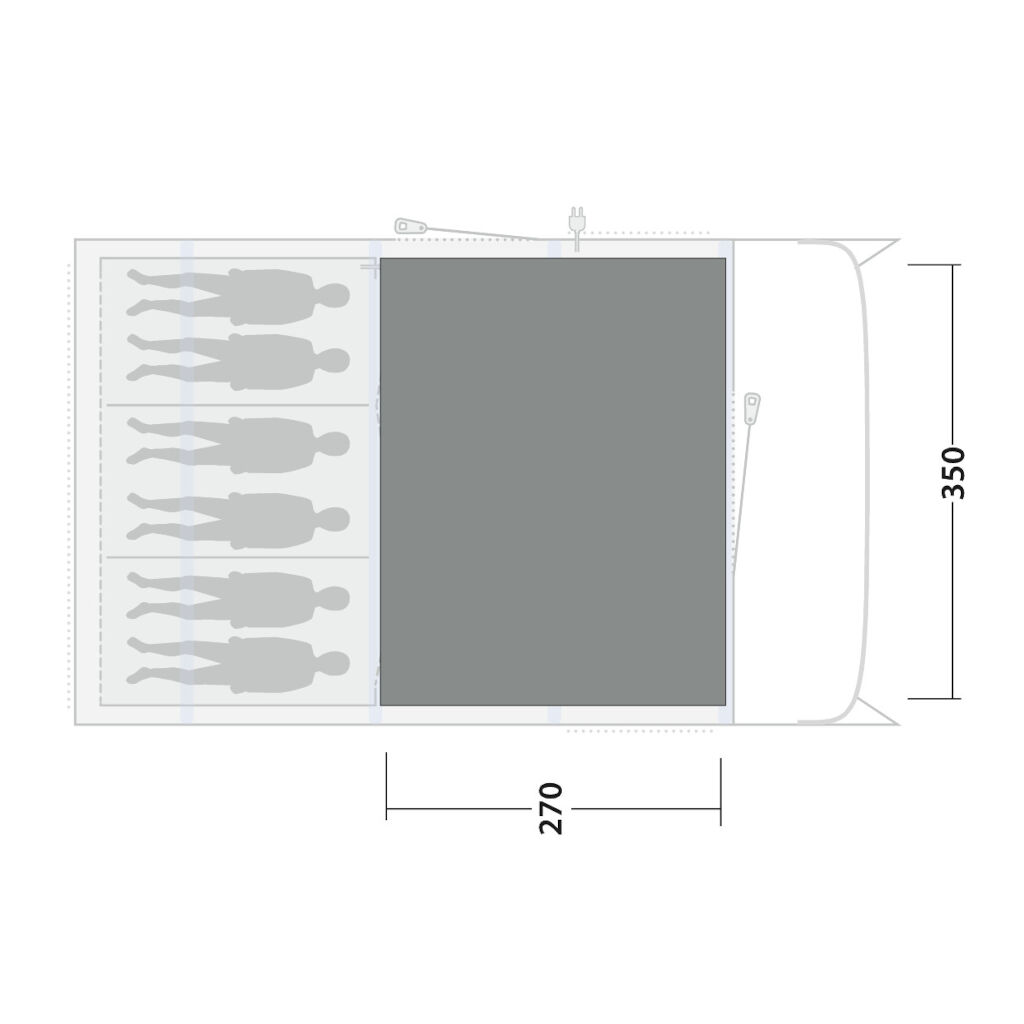 One of the most comfort-enhancing accessories for family tents is a carpet. Besides increasing comfort, the carpet insulates the living area from ground cold. The carpet is tailored to the tent's dimensions and has attachments that allow it to be fastened in the tent corners for stability.