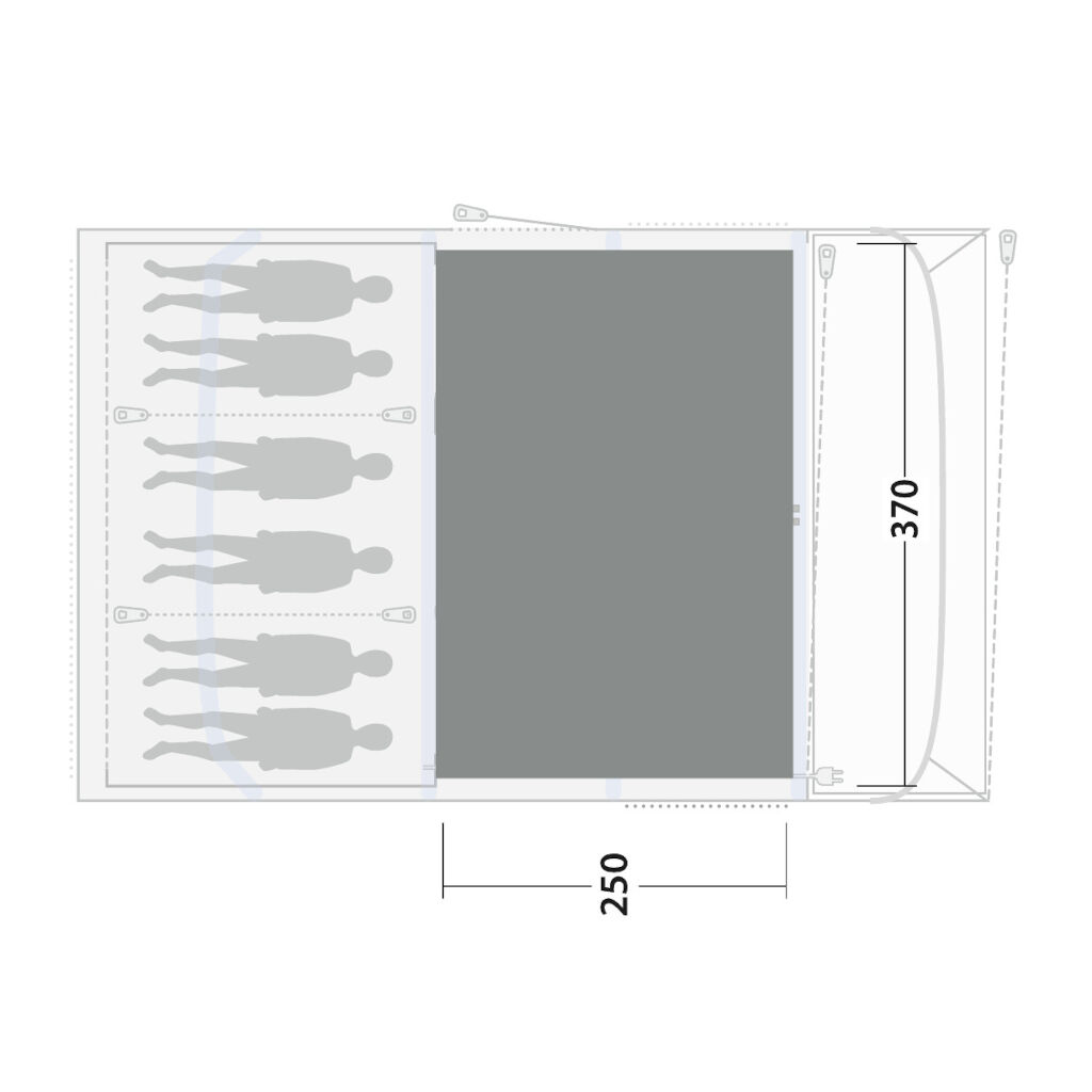 One of the most comfort-enhancing accessories for family tents is a carpet. Besides increasing comfort, the carpet insulates the living area from ground cold. The carpet is tailored to the tent's dimensions and has attachments that allow it to be fastened in the tent corners for stability.