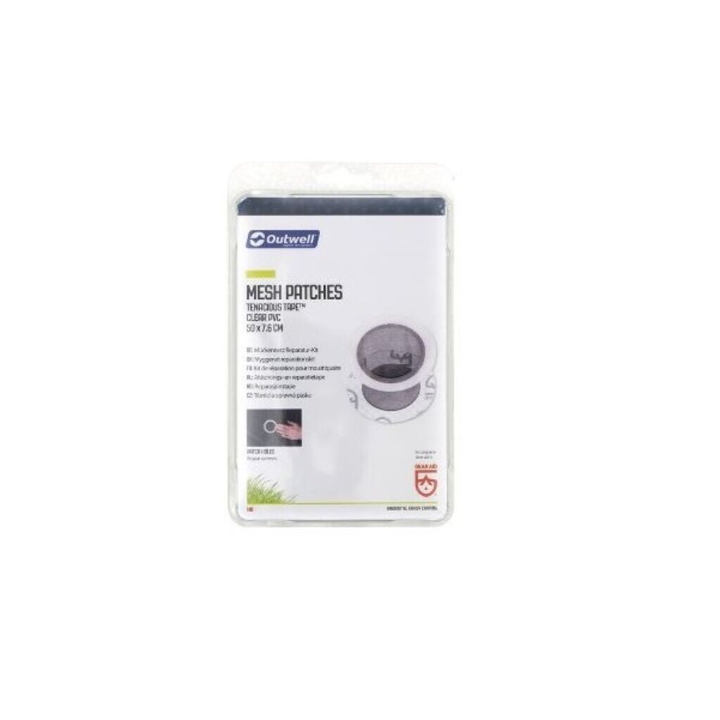 Outwell self-adhesive mosquito net patches are easy to apply and ideal for camping trips and expeditions where quick repair of damaged gear is essential.