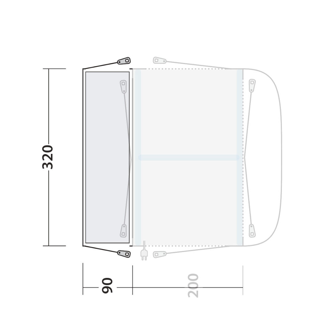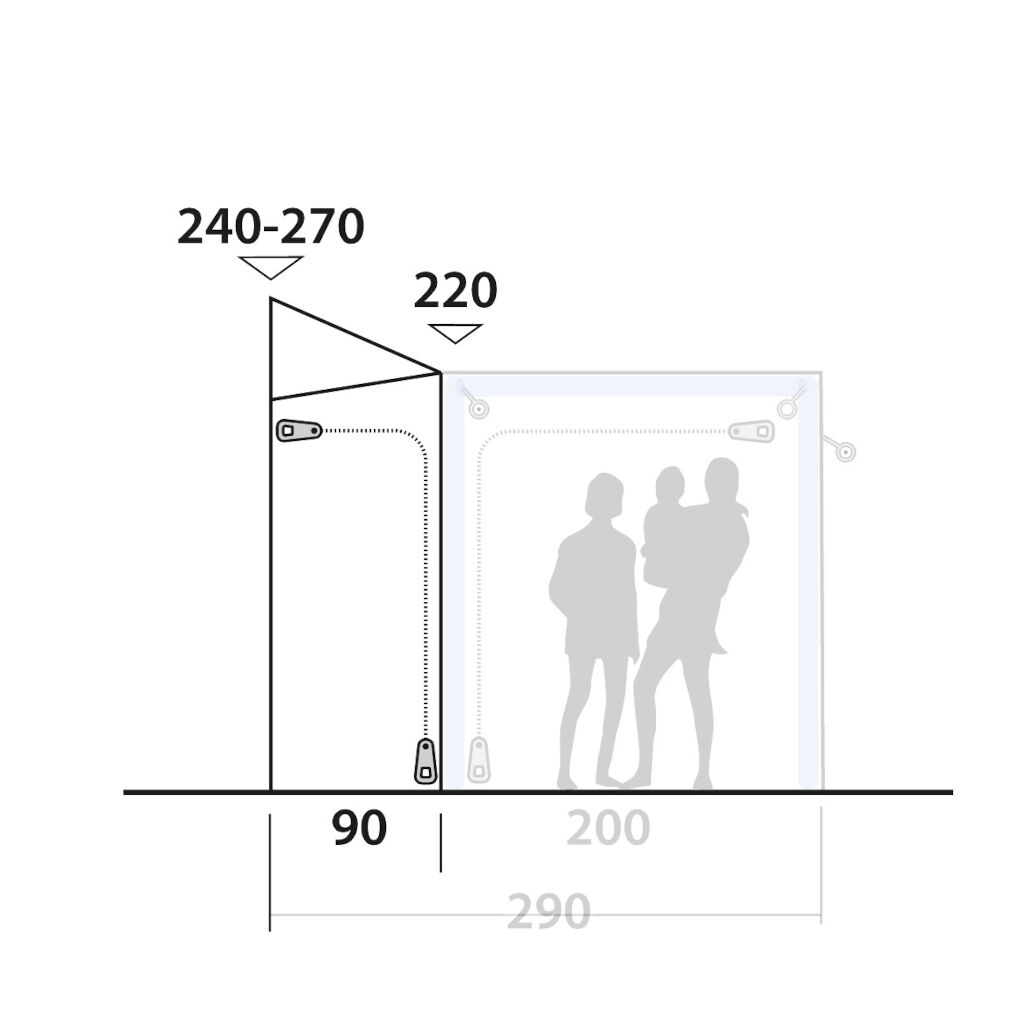 Outwell Parkville 200SA Tall Connection makes it possible to connect the Outwell Parkville 200SA tent to cars with a connection height between 240 - 270 cm. Perfect for those who have higher vans such as Ducato, Sprinter, or similar vehicles. Easily mounted like a regular connection tunnel.