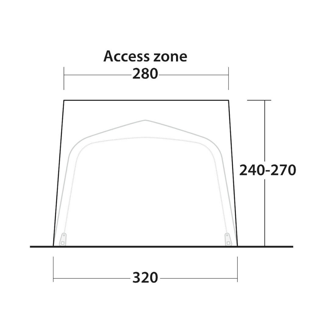 The Outwell Parkville 200SA Tall Connection is a separate tunnel that can be attached to the Outwell Parkville 200SA tent. The tunnel is suitable for taller campervans with a connection height between 240 - 270 cm, such as Sprinter, Ducato, and similar vehicles. It also provides protective capabilities thanks to an extra overhang that attaches over the tent.
