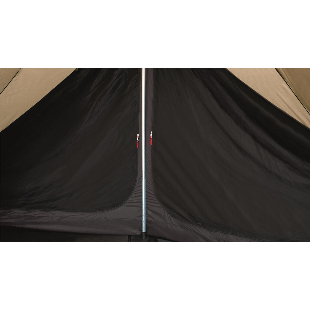 An inner tent for four people for the Tipi tents Robens Klondike/Settler, divided into two bedrooms. The wall between the bedrooms can be opened up if one wishes to gather the family/group in a larger room.