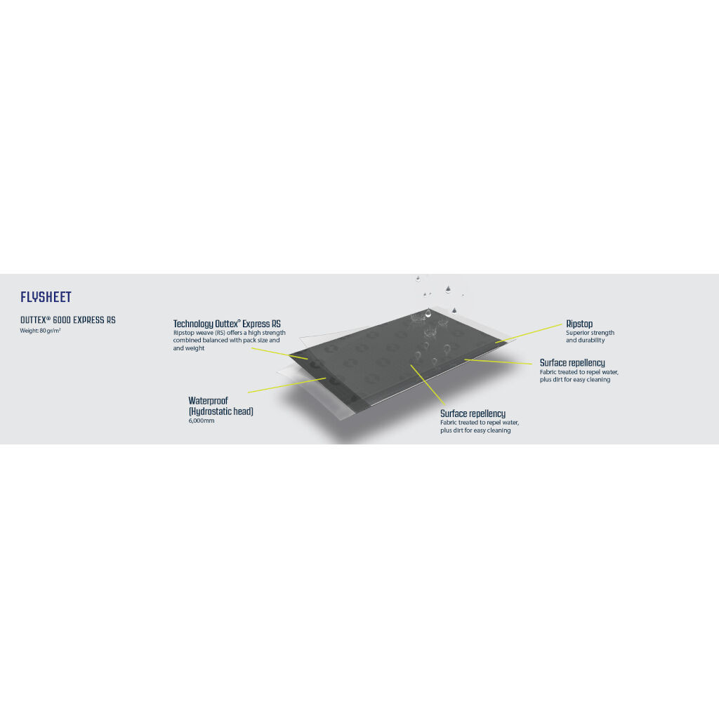 | Flysheet | Outtex® 6000 Express RS polyester, 100% polyester |